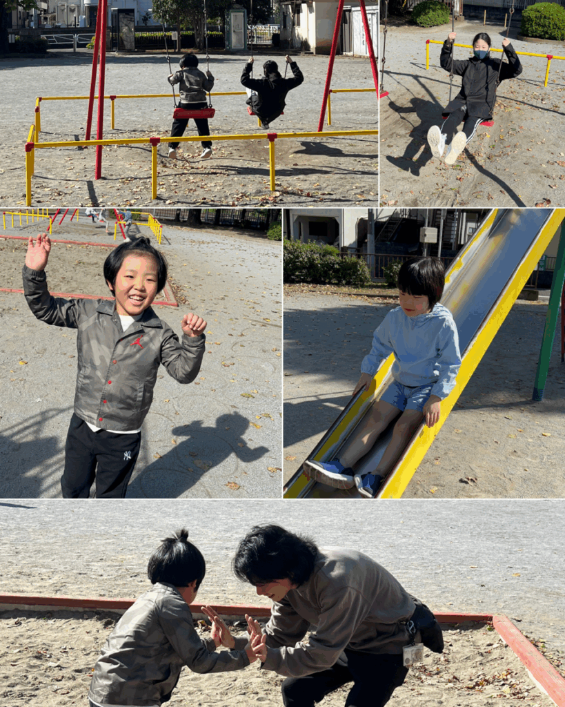 すべり台、ブランコ、追いかけっこなど、みんなで全力で楽しんできました✨